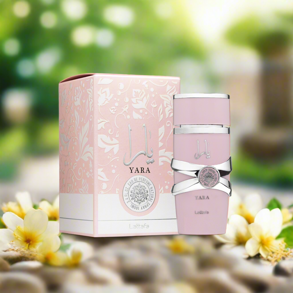 Yara by Lattafa Perfumes is a Amber Vanilla fragrance for women. Yara was launched in 2020. Top notes are Orchid, Heliotrope and Tangerine; middle notes are Gourmand Accord and Tropical Fruits; base notes are Vanilla, Musk and Sandalwood.